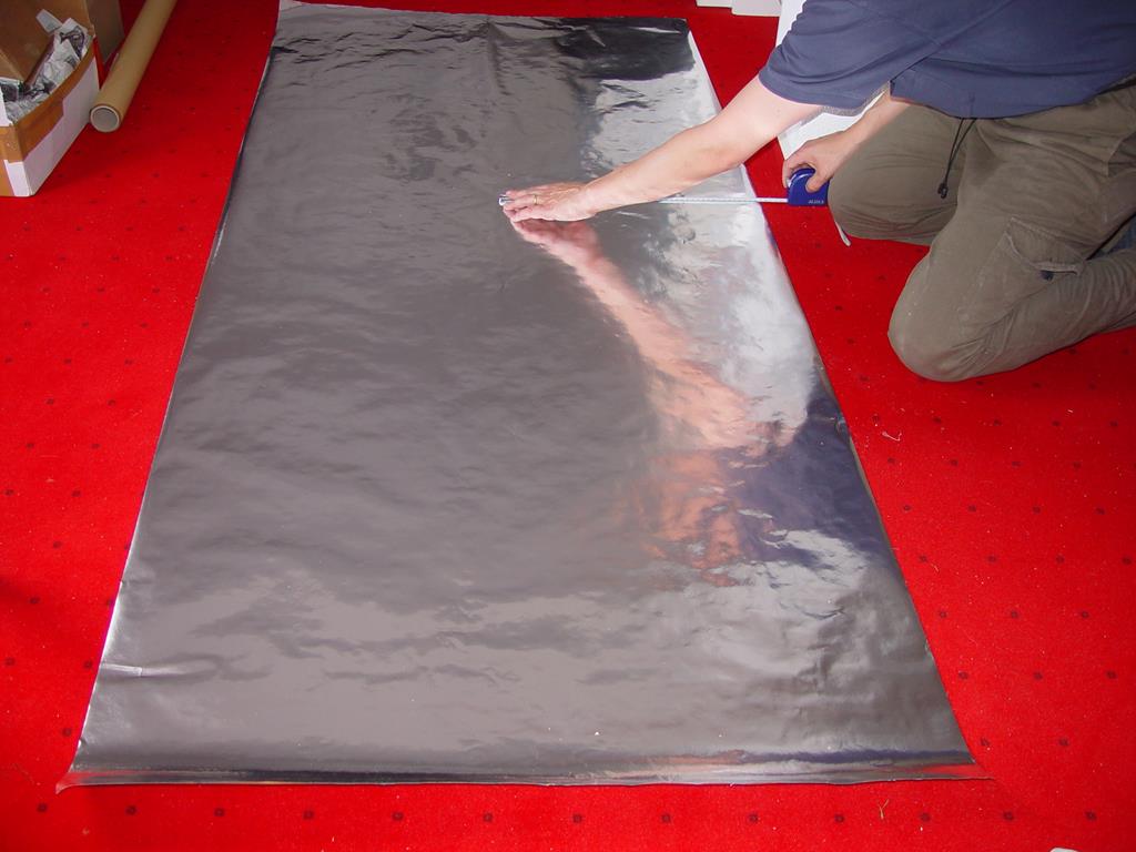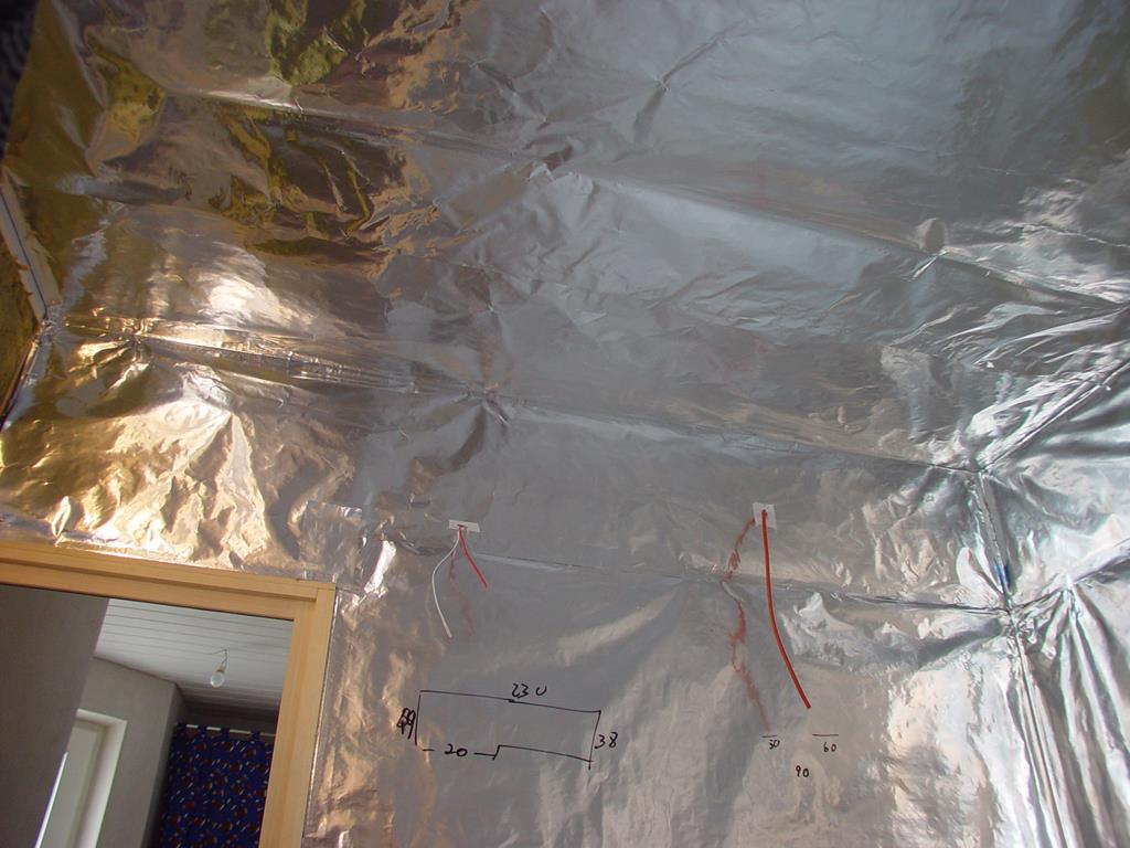 Das Verlegen der Folie an der Decke erfodert Messen und planen. Ich habe die Folien entsprechend gefaltet.