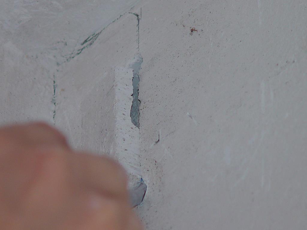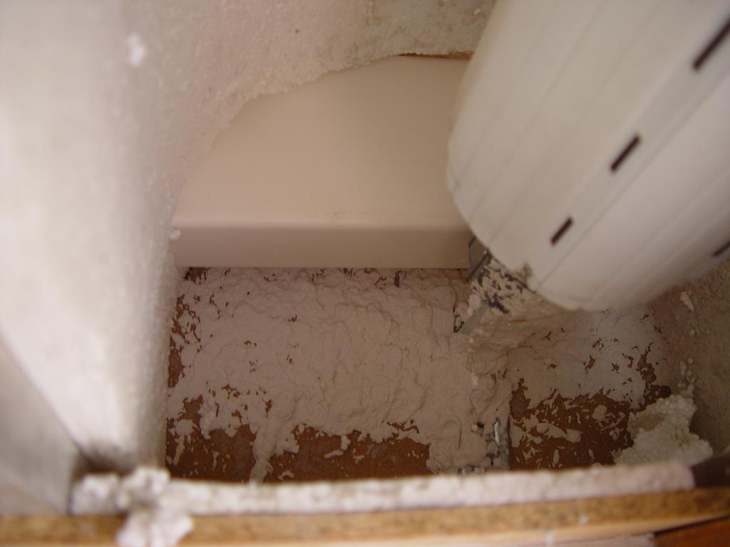 Nachdem das Loch auf der Innenseite fertig ist, muss der Weg nach draussen durch die Styropordämmung freigelegt werden.